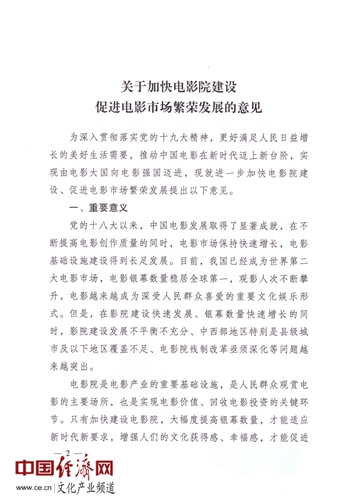 經(jīng)濟(jì)日?qǐng)?bào)-中國(guó)經(jīng)濟(jì)網(wǎng)北京12月14日訊 近日,國(guó)家電影局印發(fā)《關(guān)于加快電影院建設(shè)促進(jìn)電影市場(chǎng)繁榮發(fā)展的意見(jiàn)》的通知,全文如下