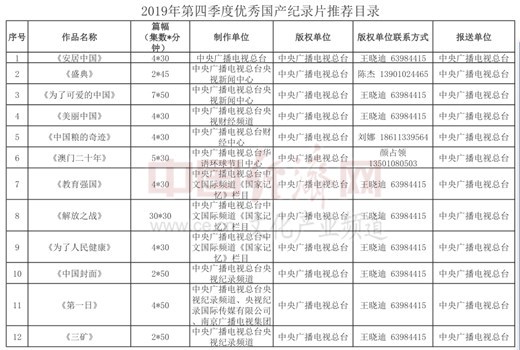 經(jīng)濟(jì)日?qǐng)?bào)-中國(guó)經(jīng)濟(jì)網(wǎng)北京5月25日訊 近日,國(guó)家廣播電視總局辦公廳公布《2019年第四季度優(yōu)秀國(guó)產(chǎn)紀(jì)錄片推薦目錄》,經(jīng)全國(guó)選送、評(píng)委網(wǎng)上審聽審看、填寫投票表并簽字等過程后,《安居中國(guó)》等87部作品從報(bào)送單位參與選送的272部紀(jì)錄片中脫穎而出,入選2019年第四季度優(yōu)秀國(guó)產(chǎn)紀(jì)錄片。中央廣播電視總臺(tái)、北京市廣播電視局、上海市廣播電視局等報(bào)送單位入選作品數(shù)量位居前列。