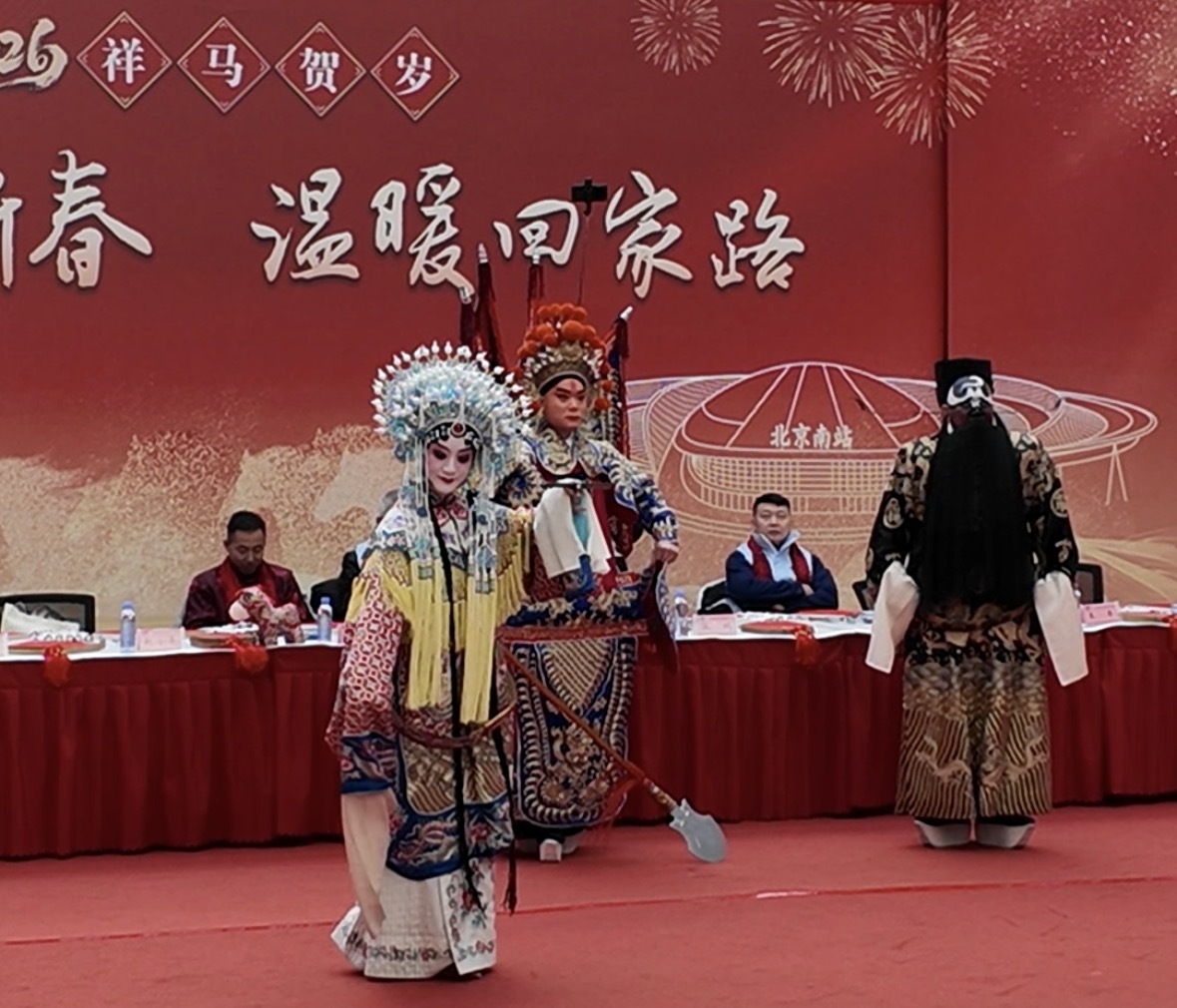2月10日農(nóng)歷小年,北京南站候車大廳上演戲曲快閃。中國經(jīng)濟(jì)網(wǎng)記者鞠然/攝