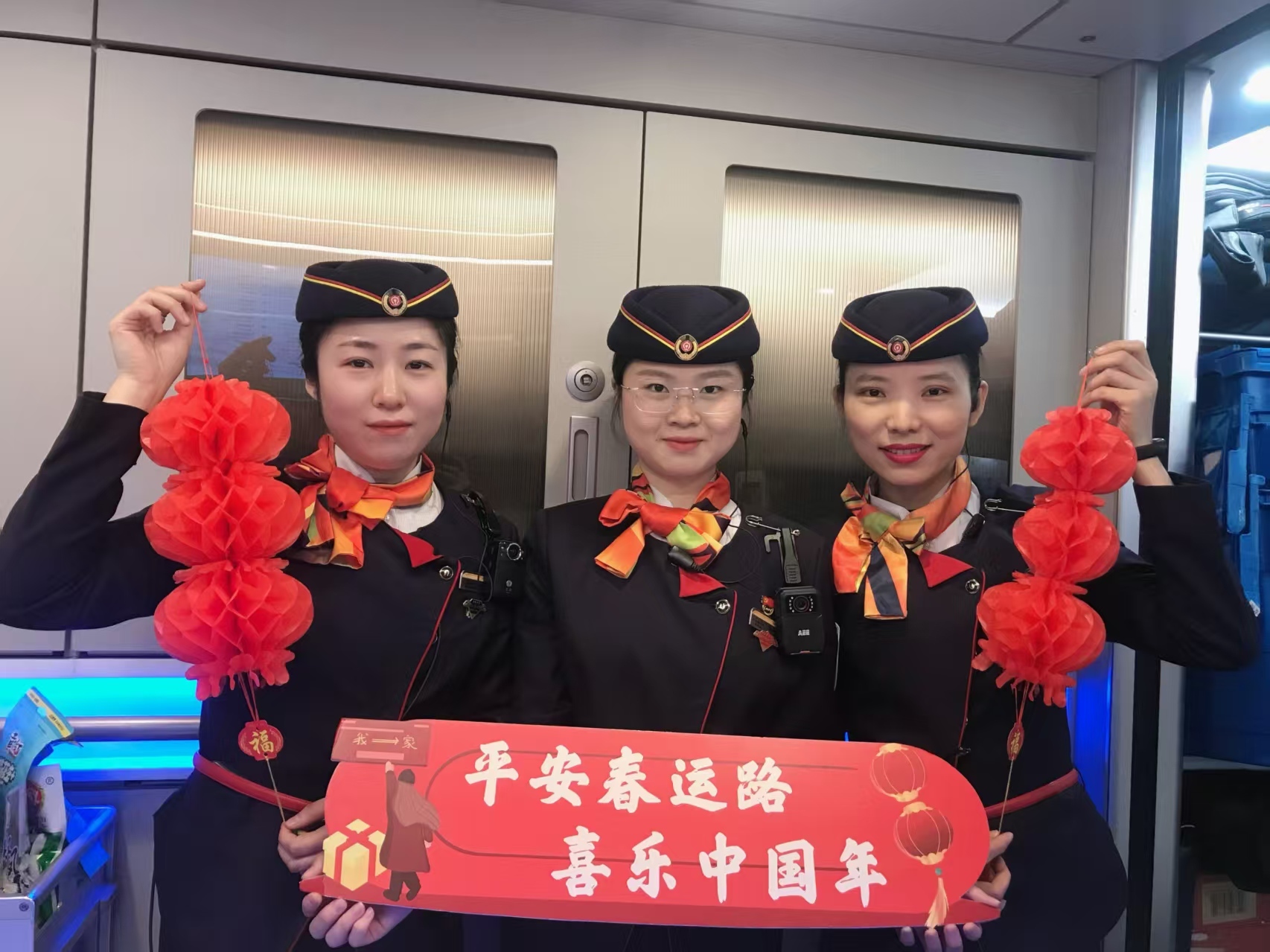 2月10日,G6002次列車上開展“高鐵迎新春,幸福中國年”特色活動。(國鐵廣州局供圖)
