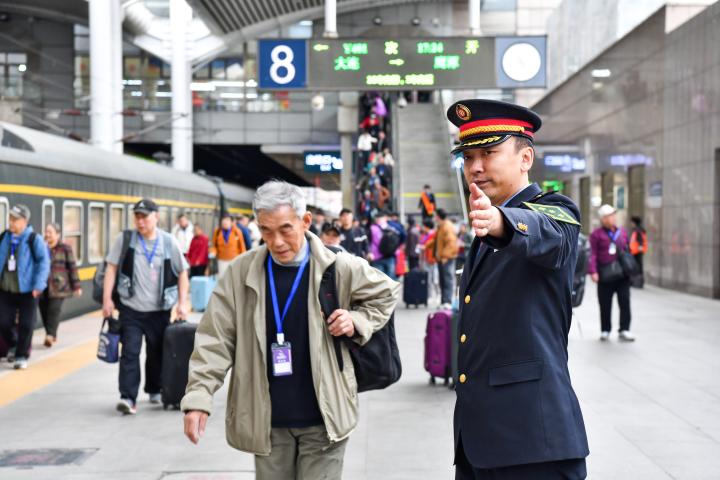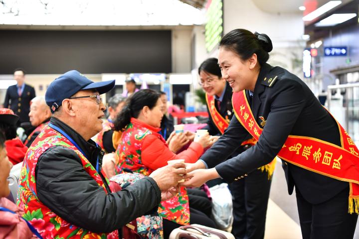 3月10日17時許,Y481/4/1次從大連站發(fā)出,標志著遼寧地區(qū)今年首趟銀發(fā)旅游專列正式啟程。864名老年游客開啟為期13天、橫跨五省兩區(qū)的暖春之旅。