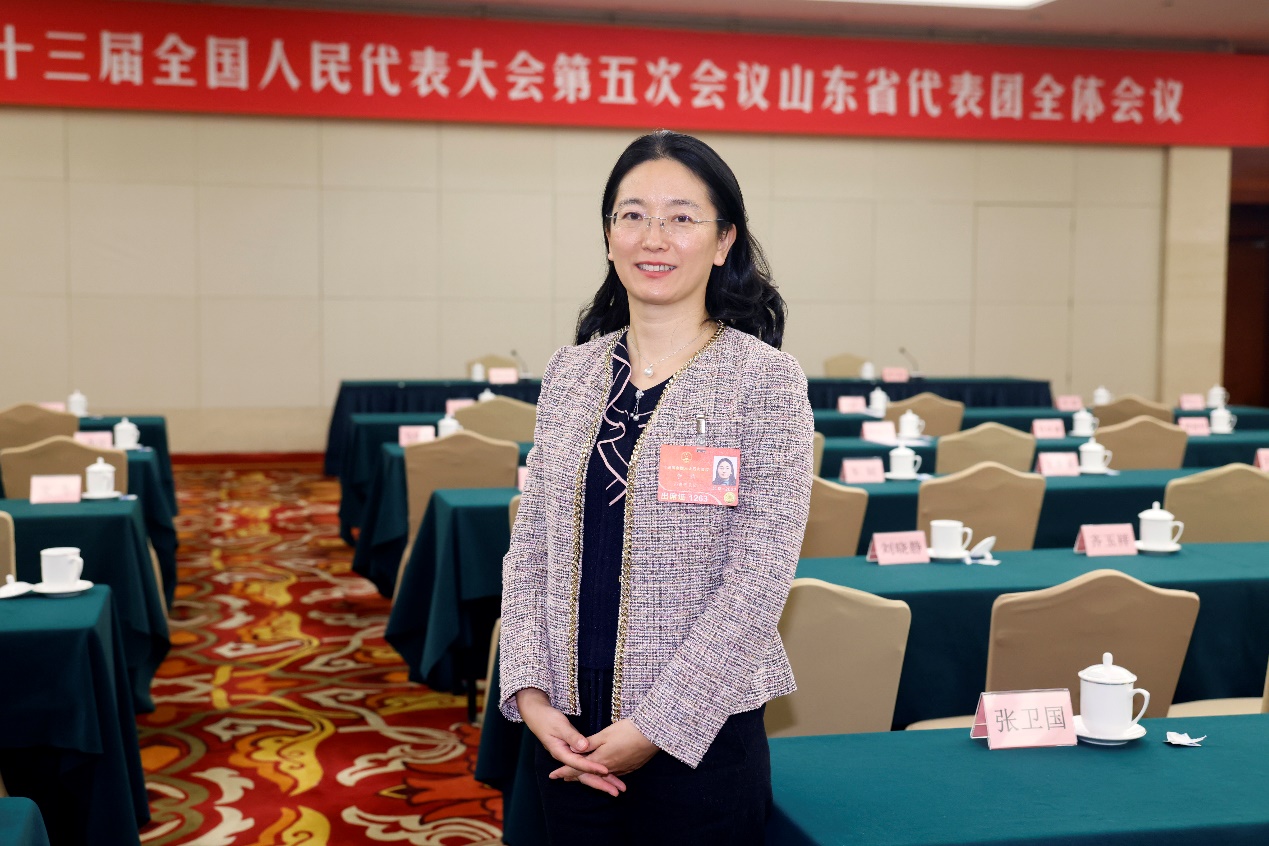 全國(guó)人大代表、齊魯制藥集團(tuán)總裁李燕在十三屆全國(guó)人民代表大會(huì)第五次會(huì)議山東省代表團(tuán)全體會(huì)議現(xiàn)場(chǎng)。圖片由受訪(fǎng)者提供。