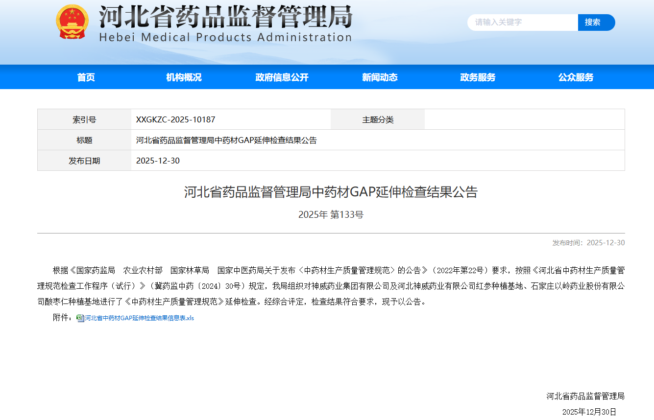 河北省藥品監(jiān)督管理局日前發(fā)布《河北省藥品監(jiān)督管理局中藥材GAP延伸檢查結(jié)果公告》,以嶺藥業(yè)酸棗仁種植基地通過河北省藥監(jiān)局組織的GAP延伸檢查,綜合評定符合要求。這是全國第一個(gè)通過GAP延伸檢查的酸棗仁基地。