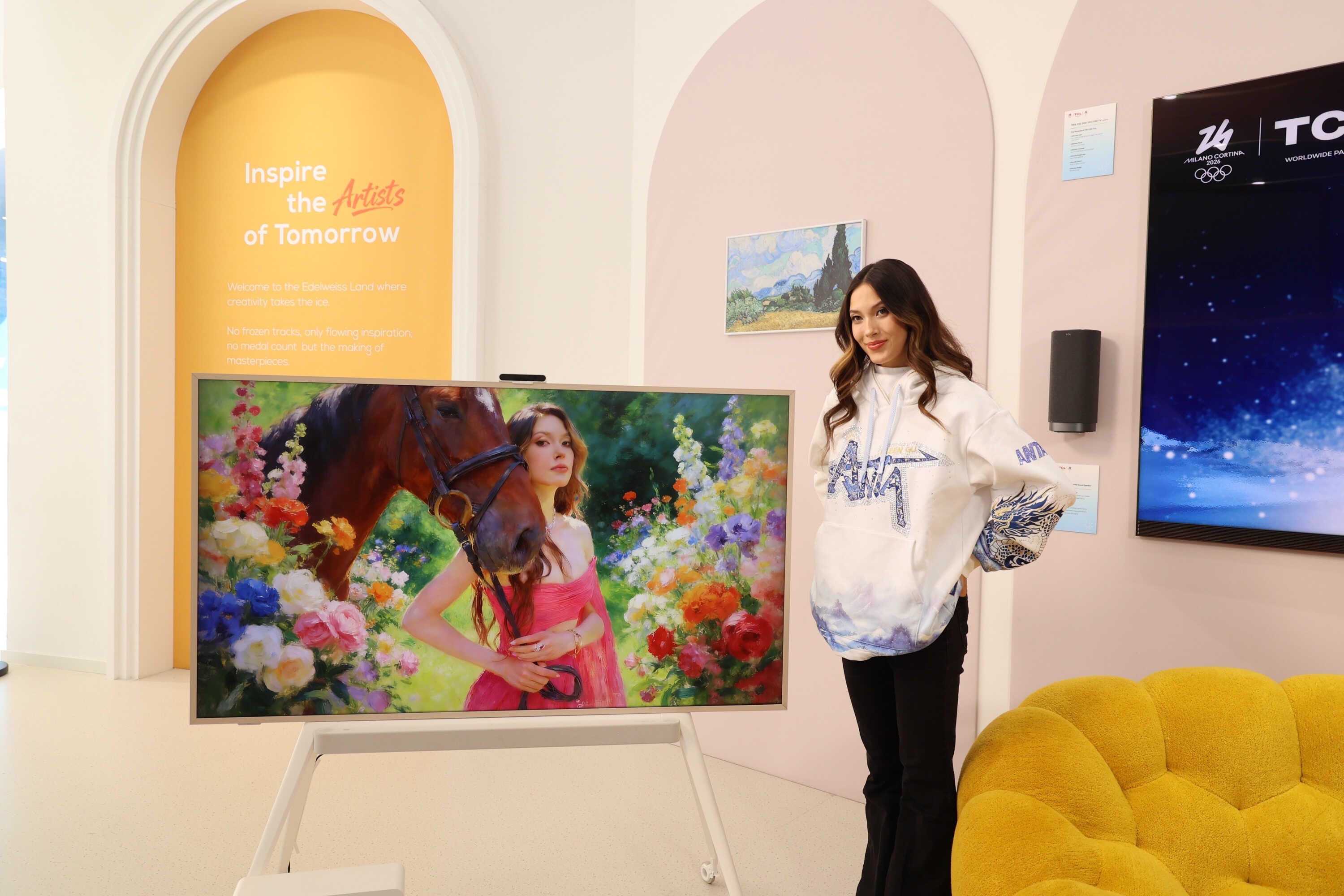 當?shù)貢r間2月23日,TCL全球品牌代言人谷愛凌參觀TCL“雪絨奇境”米蘭冬奧主題展館,并與現(xiàn)場粉絲和媒體互動。值得注意的是,這是谷愛凌本屆冬奧會后首次亮相,也是她在本屆冬奧會賽后參與的唯一一場媒體粉絲互動活動。