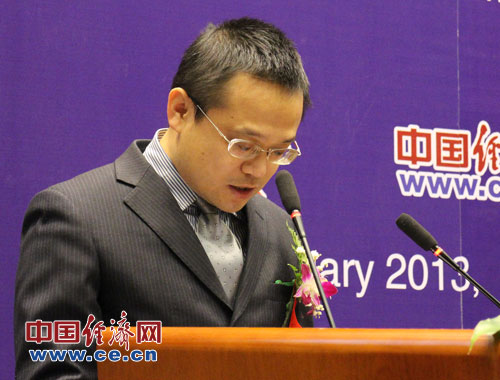 中國科學院預測科學研究中心1月26日(周五)在北京中科院數(shù)學與系統(tǒng)科學研究院舉辦“2013年中國經(jīng)濟預測發(fā)布與研討會”。圖為科學出版社經(jīng)濟管理出版分社社長陳亮致辭。中國經(jīng)濟網(wǎng)楊瀟/攝影