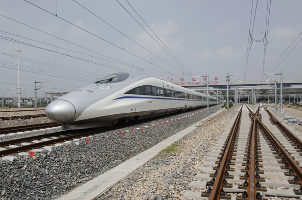 9月28日上午,在滬杭鐵路試運(yùn)行期間,由中國(guó)南車(chē)研制的CRH380A商用動(dòng)車(chē)組創(chuàng)造了416.6公里的世界鐵路最高時(shí)速。